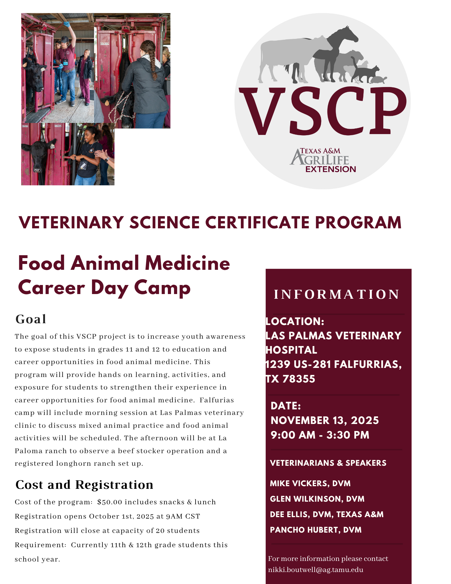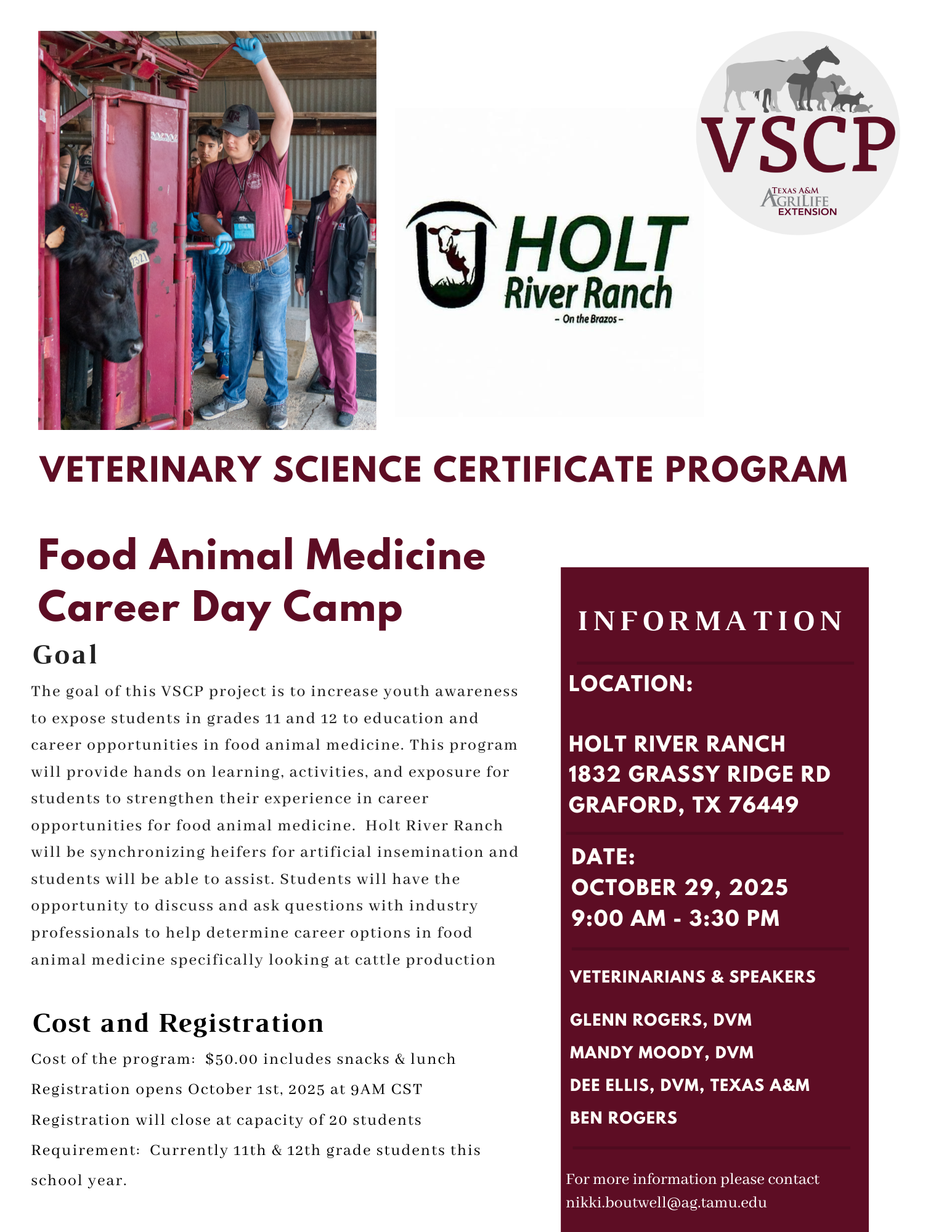 VETERINARY SCIENCE DAY CAMPS ARE FIRST COME FIRST SERVE & DO NOT REQUIRE APPLICATION